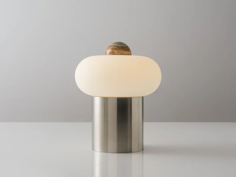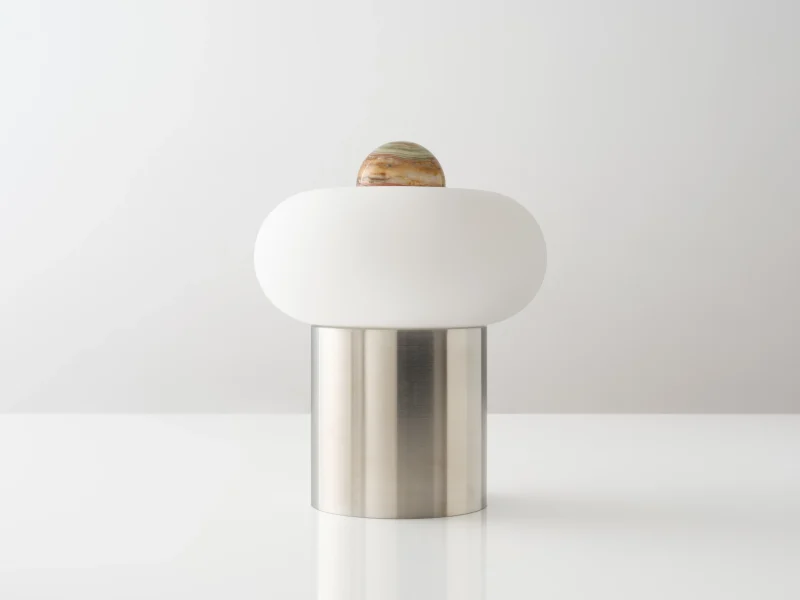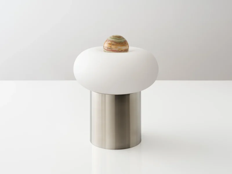 Capsula is a sculptural table lamp handcrafted in New York City by Noiro Studio. Merging material integrity with poetic form, it features a brushed stainless steel base, a mouth-blown glass shade, and a precision-cut onyx top. Drawing inspiration from the fluidity of space and the organic forms found in nature, Capsula offers a contemplative interplay between structure and light.