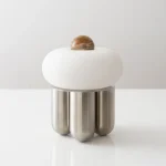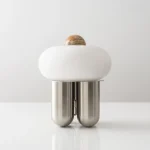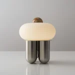 Capsula is a sculptural table lamp handcrafted in New York City by Noiro Studio. Merging material integrity with poetic form, it features a brushed stainless steel base, a mouth-blown glass shade, and a precision-cut onyx top. Drawing inspiration from the fluidity of space and the organic forms found in nature, Capsula offers a contemplative interplay between structure and light.