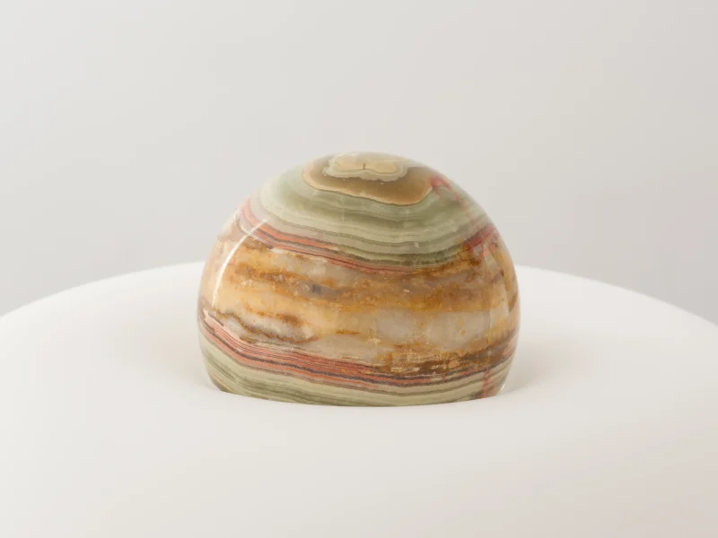 Materials: Brushed stainless steel, mouth-blown glass, honed onyx