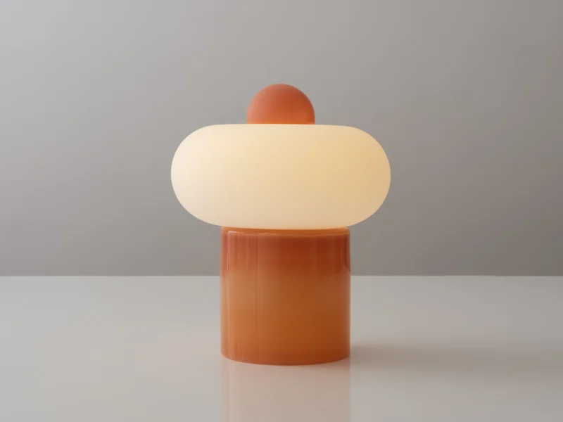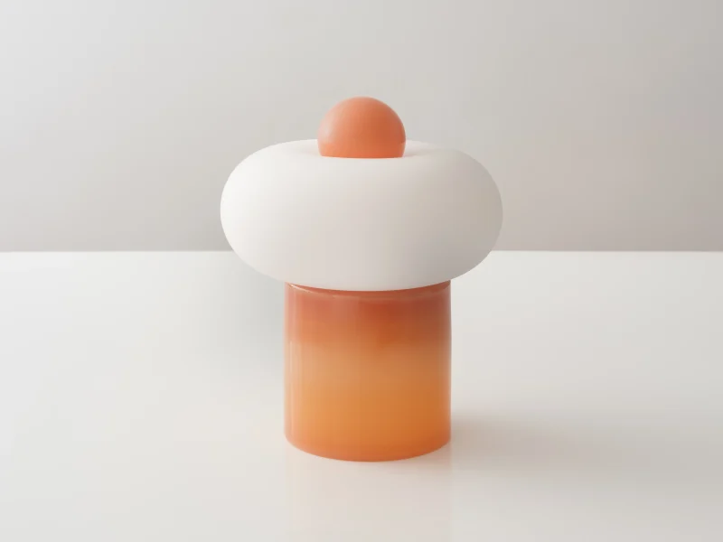 Capsula is a sculptural table lamp handcrafted in New York City by Noiro Studio. Made entirely of mouth-blown glass, it features a bold contrast between glossy tinted color and frosted white translucency. Inspired by the fluidity of space and organic forms in nature, Capsula explores the interplay between opacity and light—delivering a quietly luminous and poetic presence.