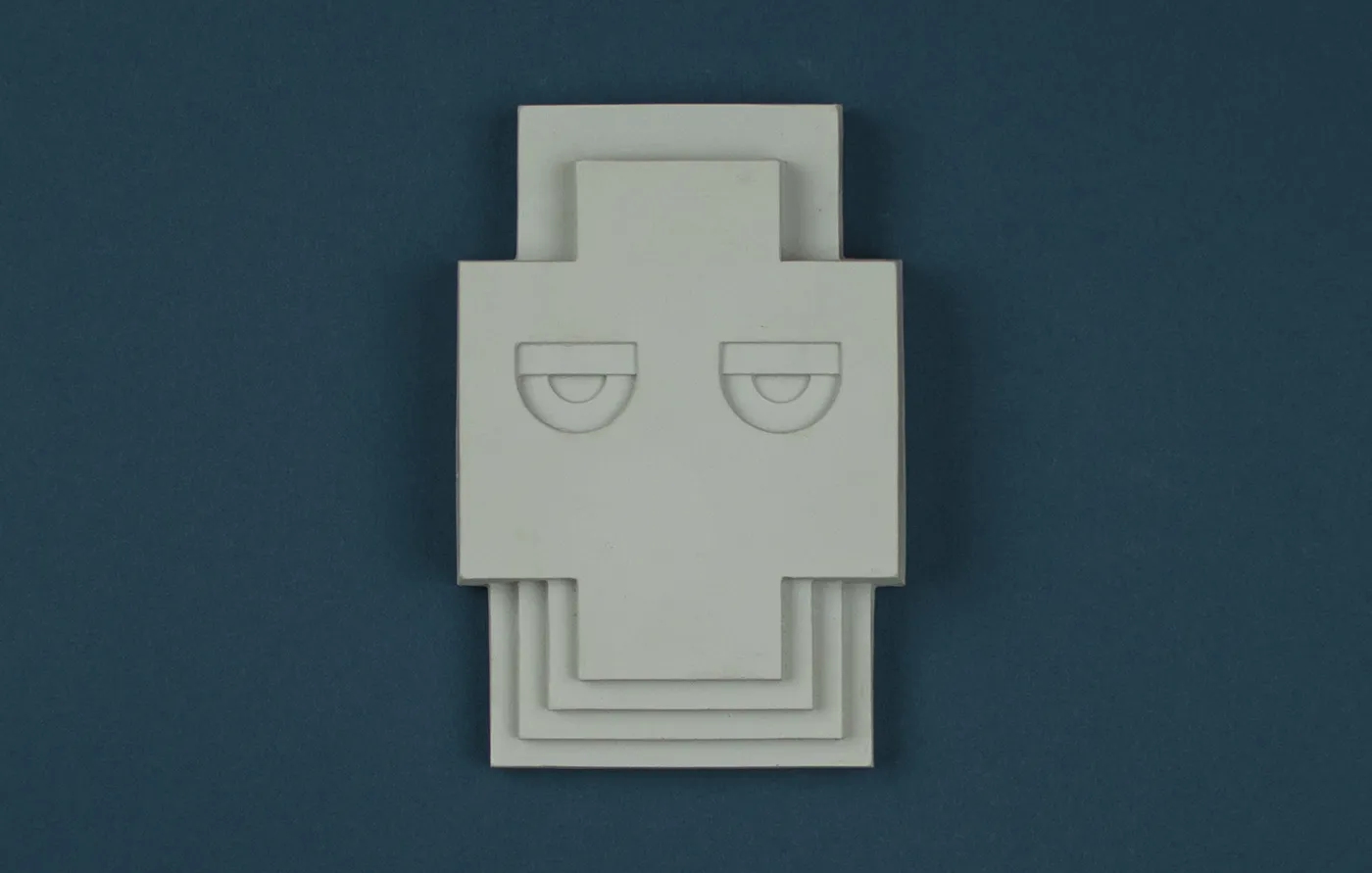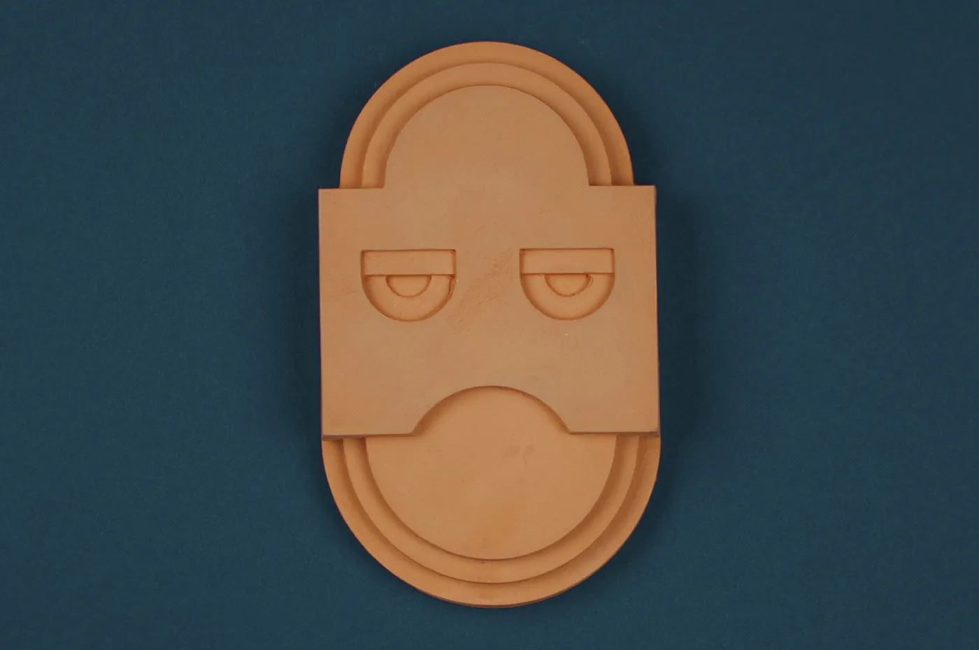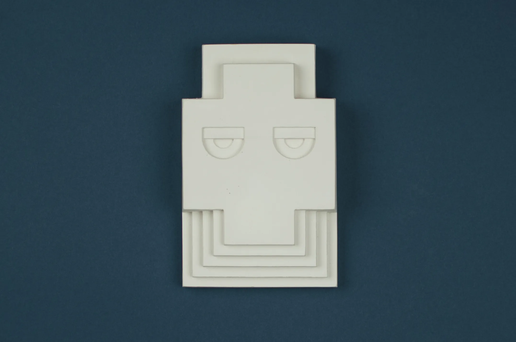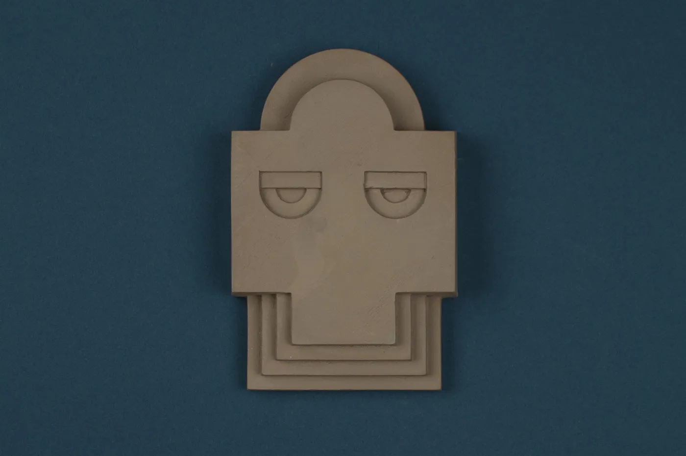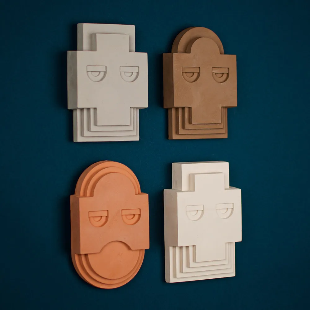 Four small format ceramic masks. Each item is handmade, one-of-a-kind, varying slightly in size, shape, and texture.