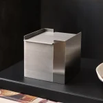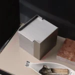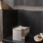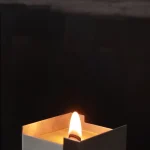 The form is complemented by a fitted lid which, once the candle has burned down, can be reused as a refined storage box for small objects. It is a design that thinks long-term—both aesthetically and functionally.