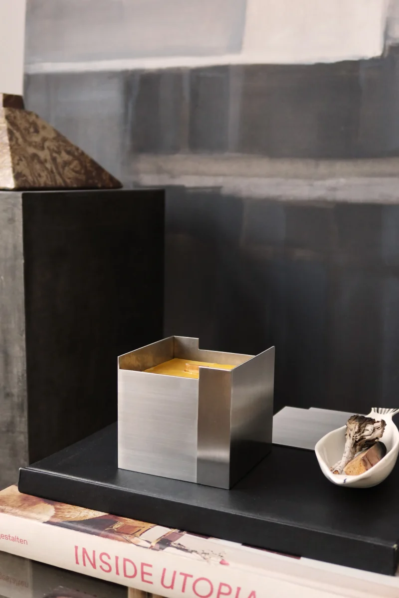 architectural object beeswax candle beewax brushed steel Candle CANDLEHOLDER carlo candle holder Collectibledesign Contemporary Interior contemporarydesign Design object designer decor geometric design HANDCRAFT Interior accent luxury candle metal candle Metalwork minimalist design modern decor reusable design scented candle sculptural candle Stainless steel Stainlesssteel statement object storage object Wax