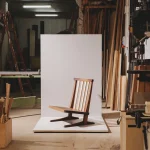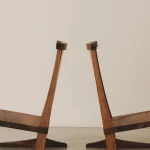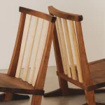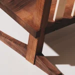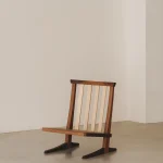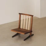 This low lounge chair is inspired by George Nakashima’s Conoid Chair. It is crafted from French walnut and American maple. It serves as a perfect example of the balance and stability that can be achieved through simple lines, thoughtful design, and refined cabinetmaking techniques. The chair is made entirely from wood and traditional joinery, without a single screw or metal element.