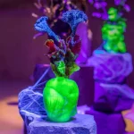 uranium glass, hand shaped, glass powder, crackling, plant