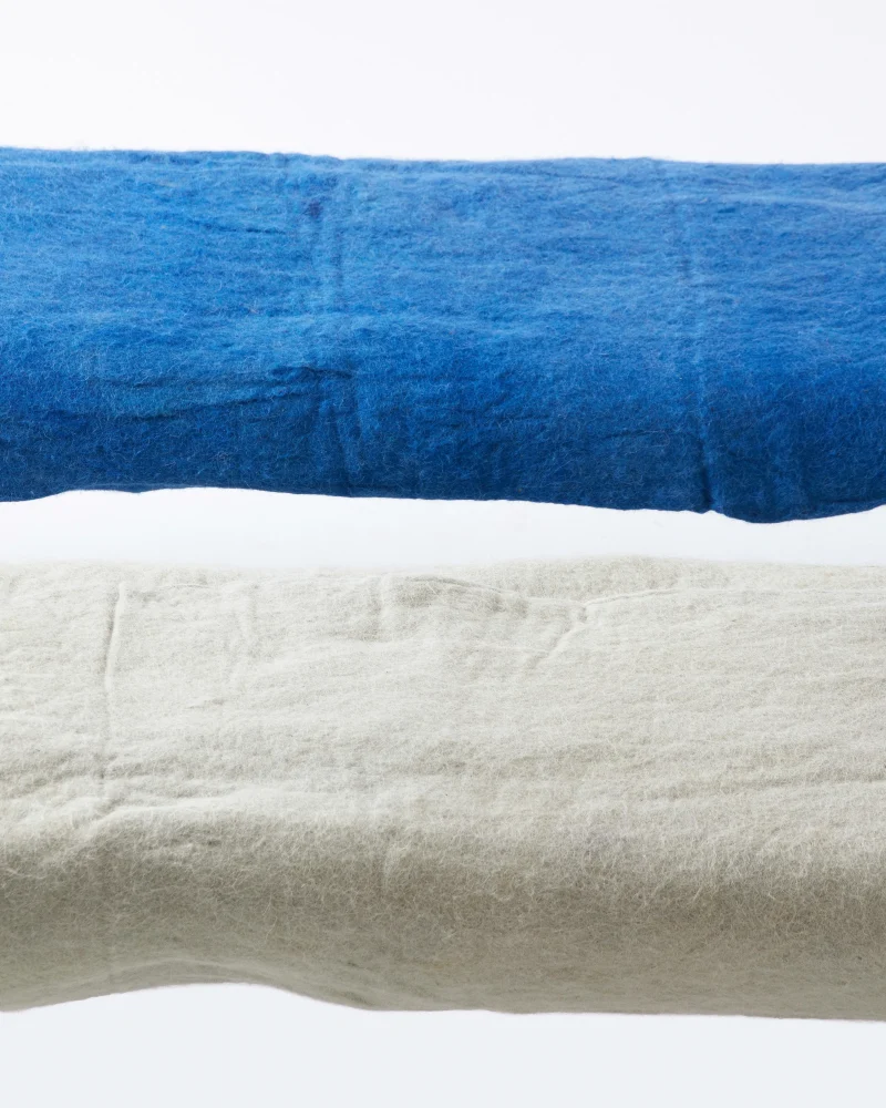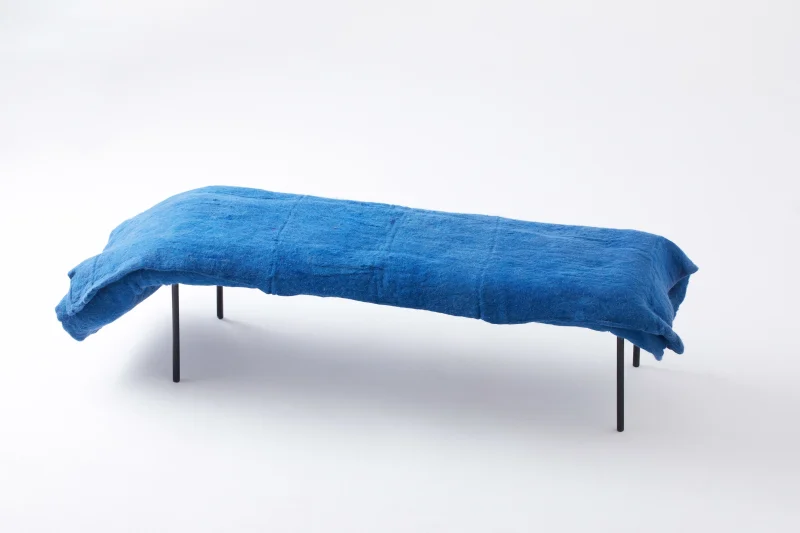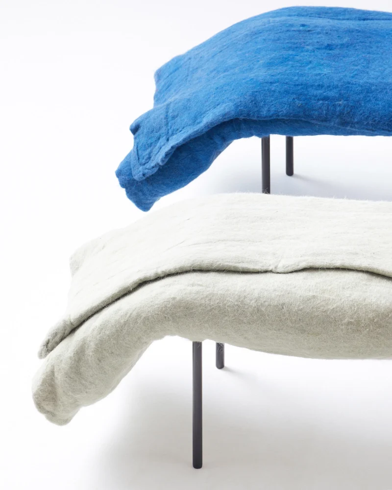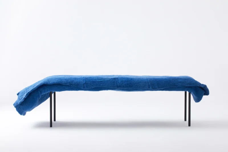 The Carpet Bench by Around the Studio is a striking fusion of textural warmth and industrial strength, crafted from handcrafted felt and steel. Designed for versatility, it is available in customizable colors, including blue, red, terracotta, and white, allowing it to seamlessly adapt to various interiors.