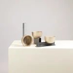 These vessels can be laid in different directions, suggesting different typologies of objects such as a recipient, sculptural artefact or abstraction of a bell.