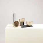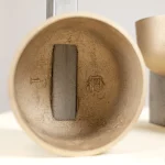 These vessels can be laid in different directions, suggesting different typologies of objects such as a recipient, sculptural artefact or abstraction of a bell.