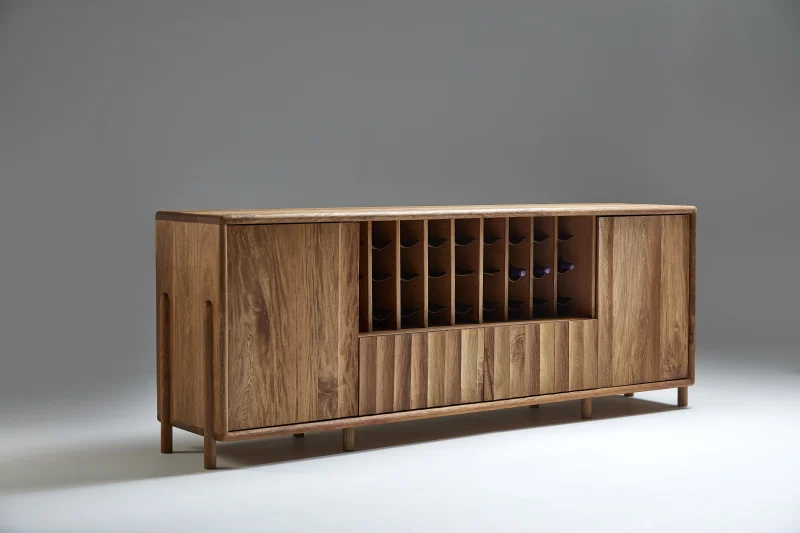Our Salomón wine cabinet is crafted from solid Rosa Morada wood, creating a furniture piece with a distinct character that will spark conversations and hold your favorite wines.