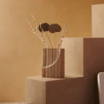 A design masterpiece, crafted from repurposed solid walnut and oak wood into a simple, chunky geometric form. Vaga Chair features precise patchwork craftsmanship, elevating the uniqueness of natural timber. The design blends traditional woodworking techniques with modern manufacturing processes, resulting in a thoughtfully designed, one-of-a-kind piece of furniture that celebrates Portugal’s rich heritage of woodworking. Whether making a statement as a standalone centerpiece or enhancing your living space, the chair blends aesthetics and craftsmanship, transcending functionality to inspire contemplation on the art of creation.