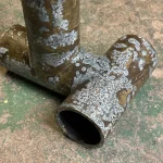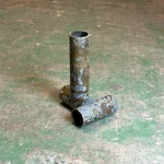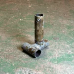 This larger scale ceramic vessel is a building variation from Nolan T.K.’s notch vessels, a series exploring transferring production processes across linear materials. It is made of a reclaimed studio clay body and features a distressed barnacle glaze that mimics a patina that would occur in nature.