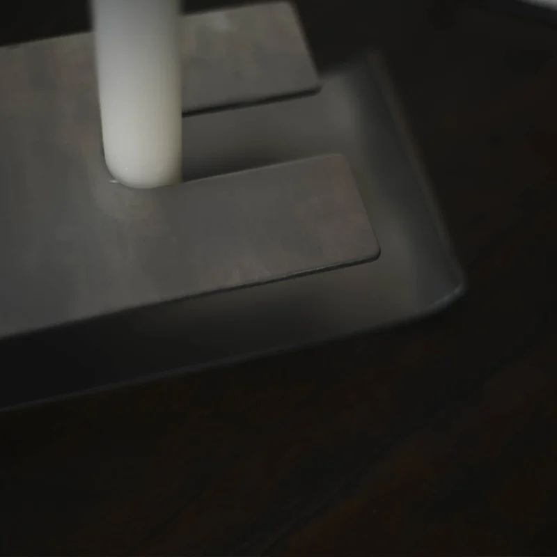 Made from stainless steel, this piece resists corrosion and enhances light reflection. Its durability and precision-folded design ensure stability, while its smooth surface amplifies the candle’s glow