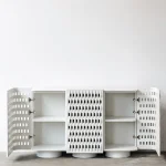 The corners of the cabinet are rounded that hides the construction and looks like oval armor.