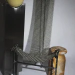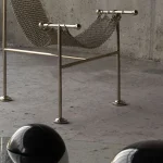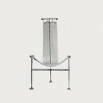 The “Chainmail Chair” by Panorammma Atelier is a new take on William Katavolos 1952’s “T-Chair”. Its seat is made up of hand-linked metal rings coming together to form a strong and flexible mesh that drapes down its T structure.