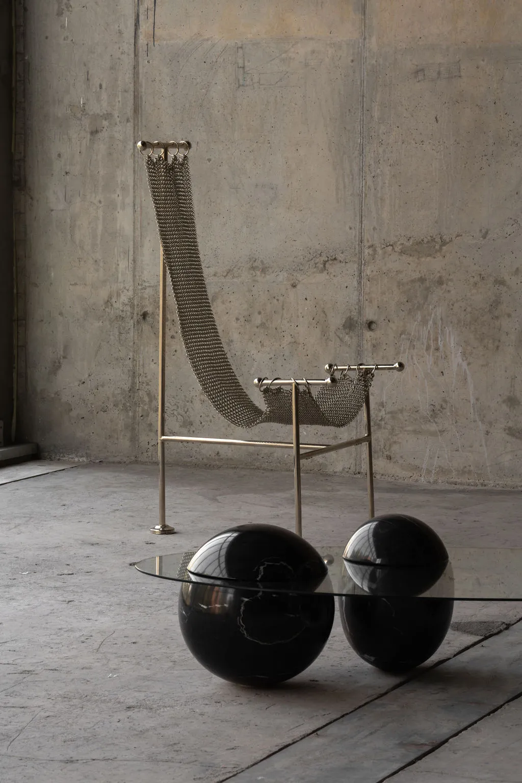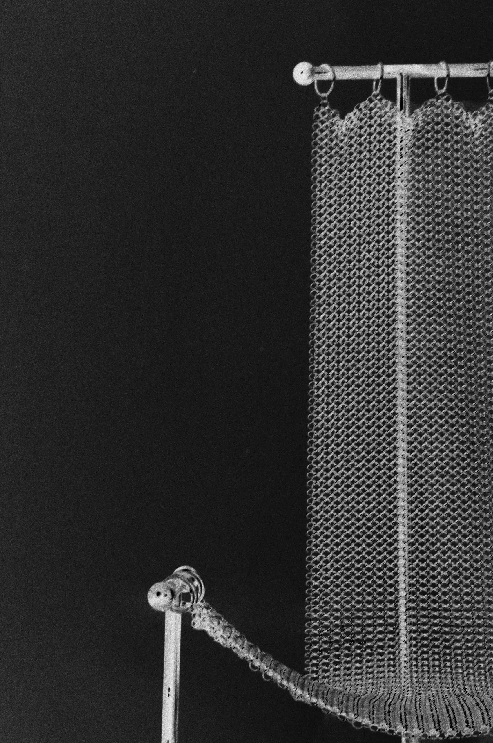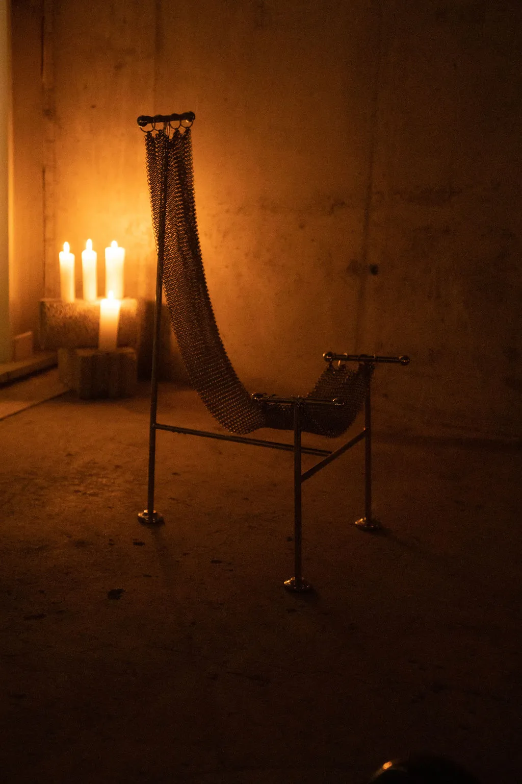 The Chainmail Chair’s design supports Felix Guattari’s concept of “a body without organs”, a body that is open to different forms of expression: to pain, to pleasure, to pleasure in pain, a body concentrated on its primal instincts. It expresses and questions our wish for constraint.