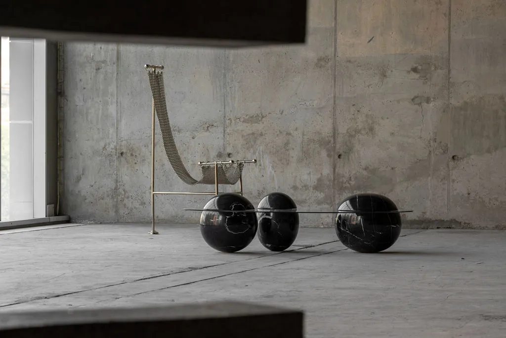 The “Chainmail Chair” by Panorammma Atelier is a new take on William Katavolos 1952’s “T-Chair”. Its seat is made up of hand-linked metal rings coming together to form a strong and flexible mesh that drapes down its T structure.