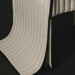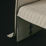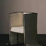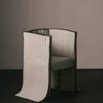 Chair In Quilt is the result of an exploration of the potential within quilt. The familiarity of the material is challenged in the encounter with the chair. As a piece of clothing the quilt wraps itself around the frame creating the shape, aesthetic and comfort of the chair. The quilt is made of Kvadrat 100% wool textile and has an aluminum frame. The quilt and frame can be separated for cleaning of the upholstery.