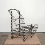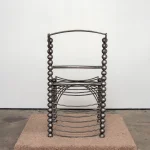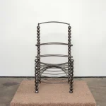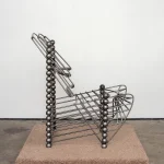 Hand-built in Los Angeles, this sculptural chair explores the language of industrial craftsmanship through interplay of repetition and flow. Spherical forms punctuate the vertical supports, recalling the ball-and-claw foot of historic furniture traditions, reimagined here with a modern vocabulary. Curved and bent steel lines expand and contract across the seat and back, shifting from areas of density to moments of openness. These variations create a dynamic sense of movement and breath within a rigid medium. The result is a work that oscillates between ornament and structure, past and present, paying homage to classic decorative motifs while asserting its own contemporary, handmade presence.