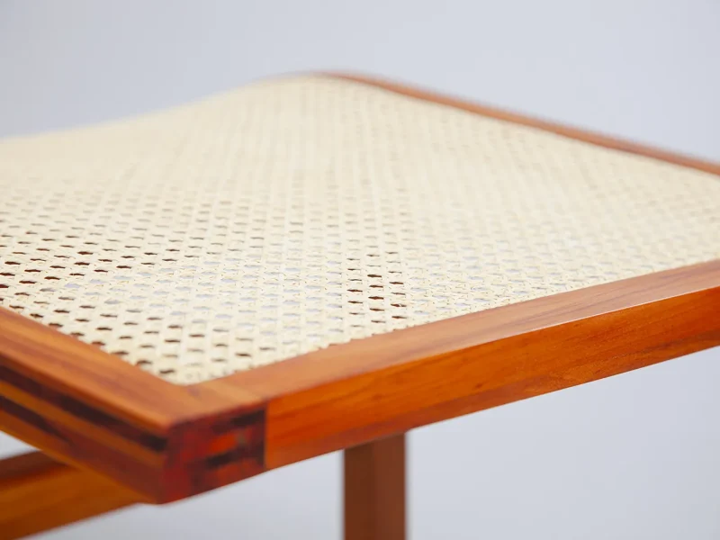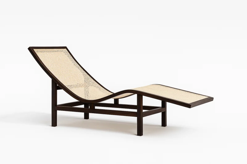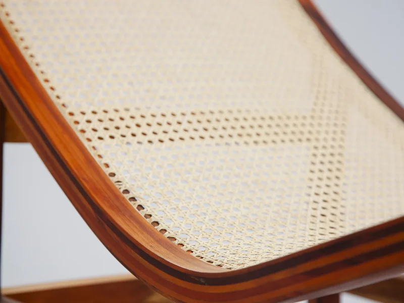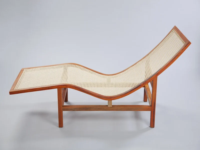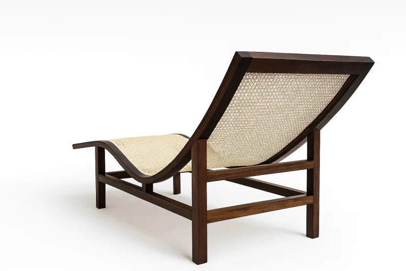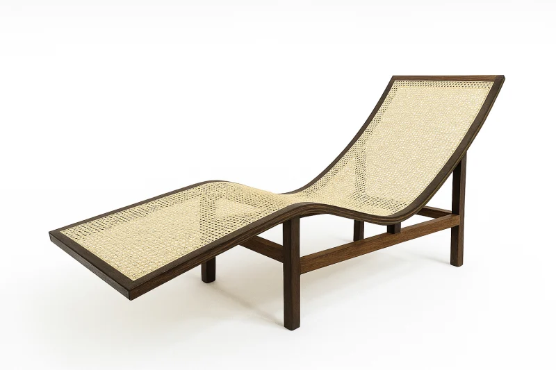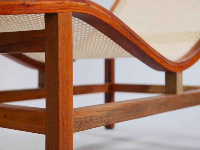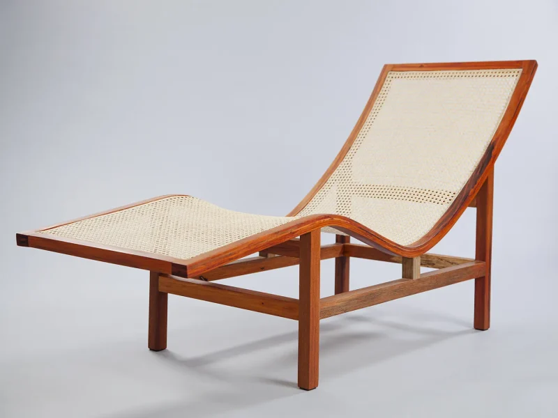 The Chaise Sossego was created to offer moments of rest with elegance and authenticity. With its organic design and construction entirely in solid wood, it combines smooth, flowing lines with the lightness and comfort of natural cane.