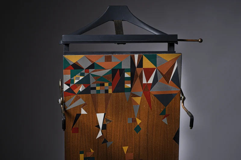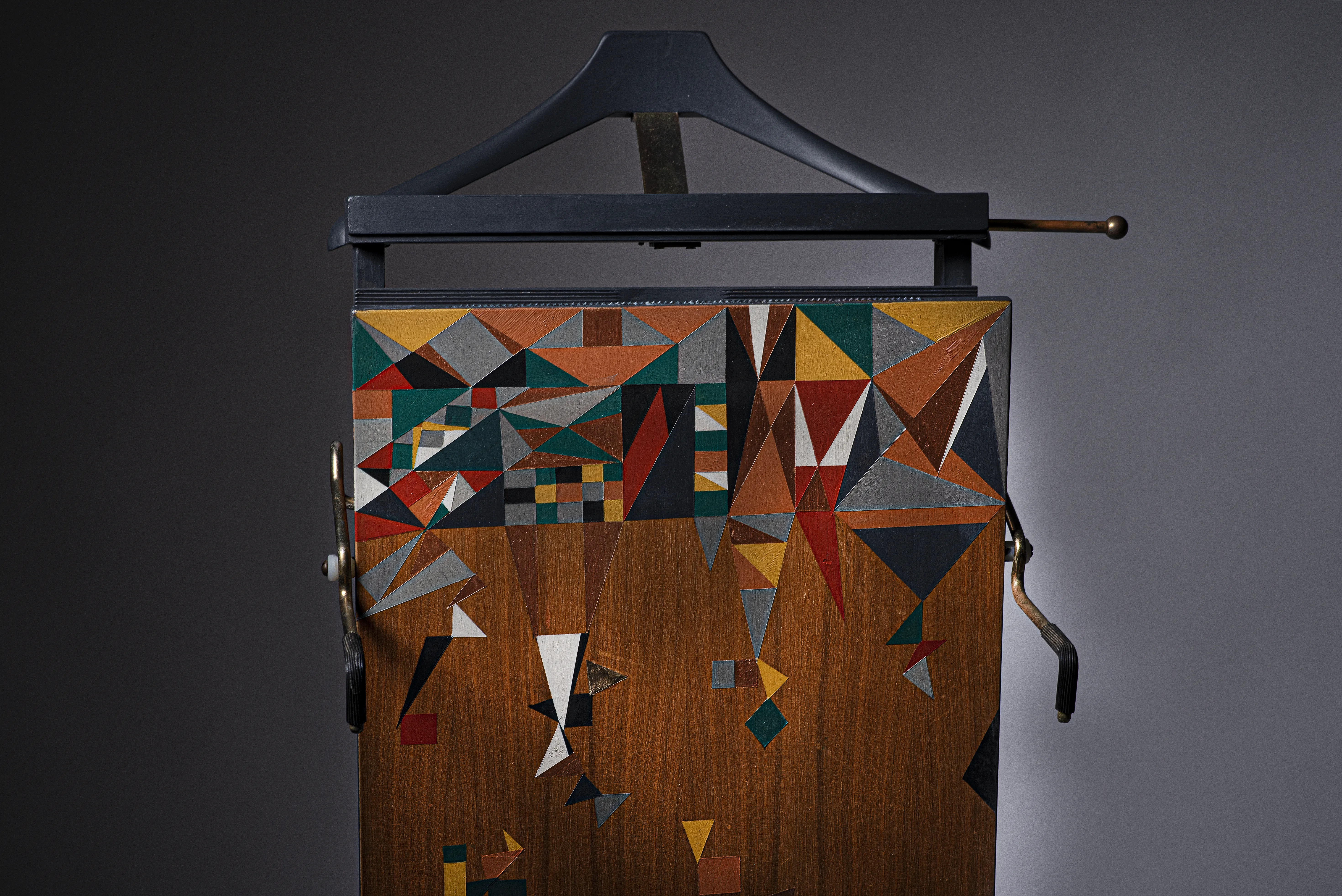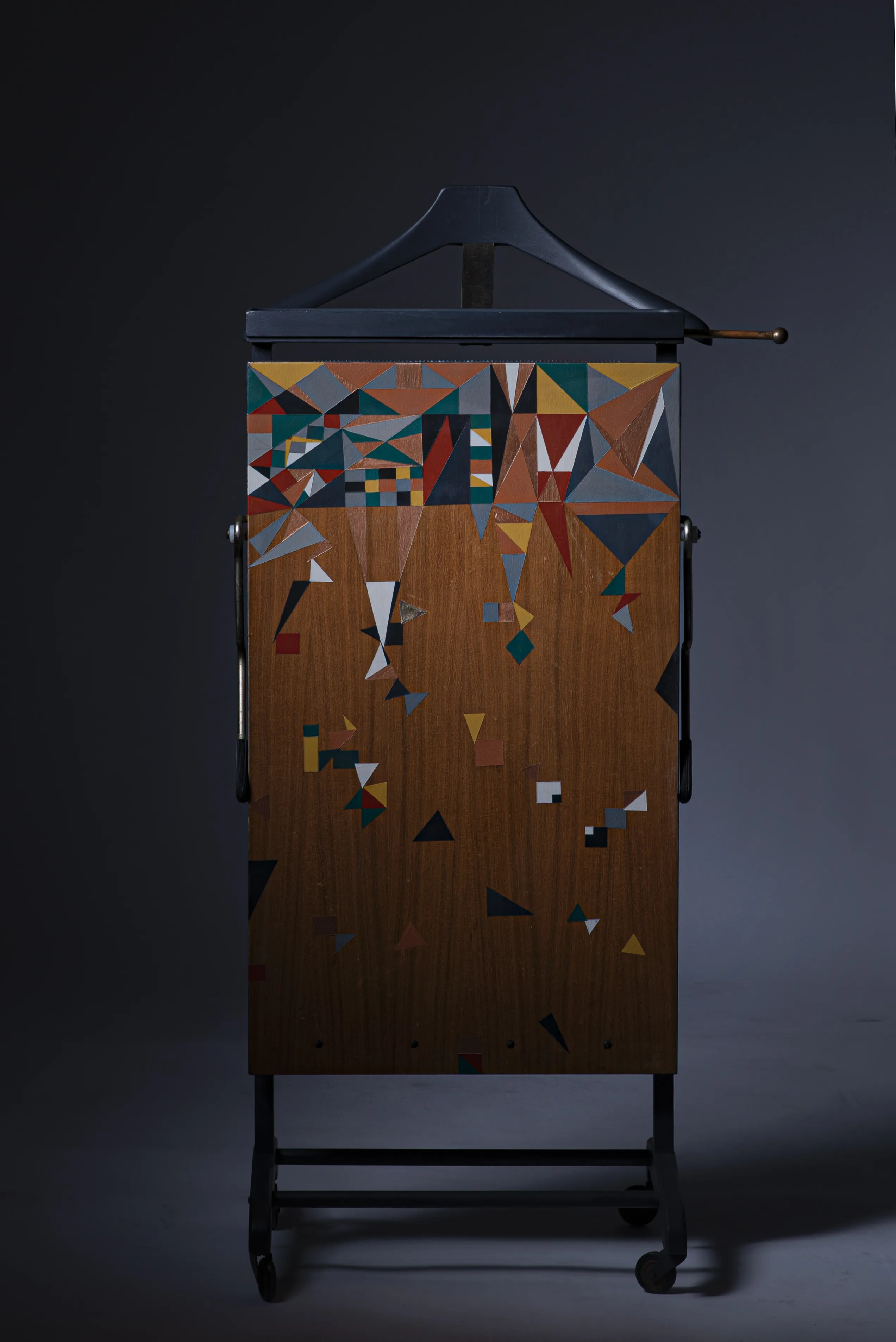 The changing composition is designed with many geometric shapes which harmonise, alternate with different forms, and with different directions.