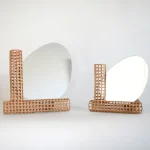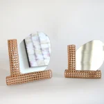 The Aphrodite Mirrors are part of the Olympe Collection. Passionate about mythology since childhood, Dzovag Kotchian pays tribute to it in this geometric collection inspired by the architecture of ancient temples. The Aphrodite Mirrors are the result of Dzovag Kotchian’s unique process of creation with raw clay. His delicate creations hide their solidity behind a graceful, poetic appearance. Each mirror is a testament to Kotchian’s artistic prowess, meticulously handcrafted to reflect the essence of his designs. As a result, minor variations from the showcased photos may be present, imbuing each mirror with its unique character.