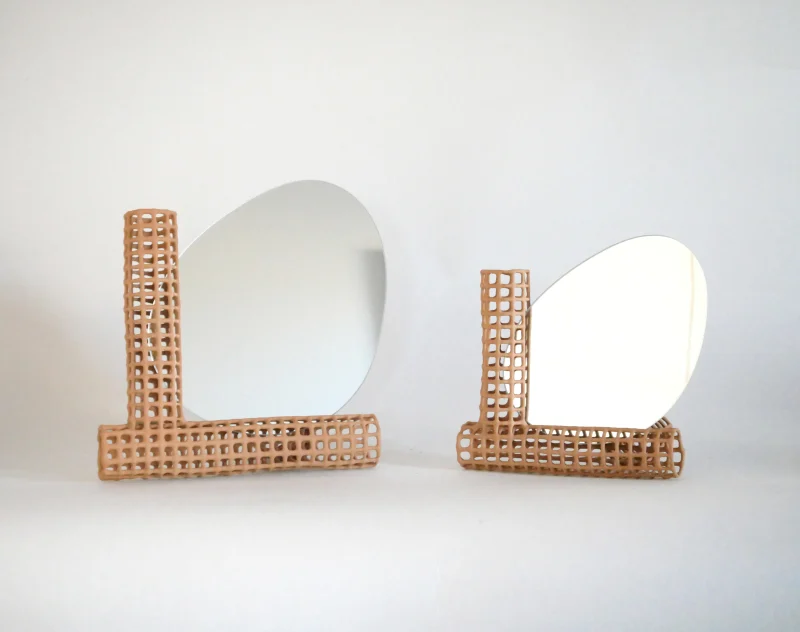 The Aphrodite Mirrors are part of the Olympe Collection. Passionate about mythology since childhood, Dzovag Kotchian pays tribute to it in this geometric collection inspired by the architecture of ancient temples. The Aphrodite Mirrors are the result of Dzovag Kotchian’s unique process of creation with raw clay. His delicate creations hide their solidity behind a graceful, poetic appearance. Each mirror is a testament to Kotchian’s artistic prowess, meticulously handcrafted to reflect the essence of his designs. As a result, minor variations from the showcased photos may be present, imbuing each mirror with its unique character.