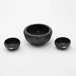 Decorative slip casted ceramic bowls finished with a rich black or dark green glaze, highlighted with gold luster details.
