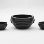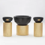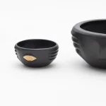 The collection features organic humanized forms meticulously handcrafted in durable slip-casted ceramics, adorned with a durable matte black glaze reminiscent of the traditional barro negro. Delicate accents in gold luster capture the cultural essence of the pre-Columbian era in form and detail, conveying the significance of gold and the sun in the region’s ancestral communities.