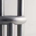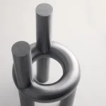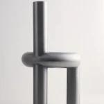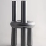 The Chunk Chair by Obscure Objects is a playful interpretation of a raised seating ring, featuring three oversized legs and a backrest, all crafted from solid stainless steel. Drawing inspiration from the ubiquitous stainless steel pipes and urban structures, it harmoniously combines soft, rounded geometric forms with a robust, enduring material. The uniformly hand-brushed surface lends a refined touch to the rounded edges, while the intentionally visible weld seams pay homage to its industrial fabrication process.