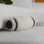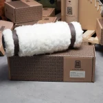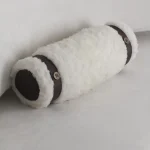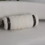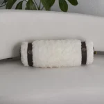 Decorative bolster pillow with artisanal sheepskin from Cotacachi, Imbabura.