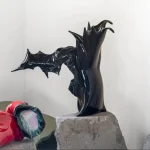 The object CINDY II is part of the collection of objects Fashion Glass, which was created together with the fashion designer Barbora Kotesovcova for the exhibition in the gallery Curator Contemporary. The experimental object works in a novel way with a combination of glass and textile. The work uses the analogy of the reflection of opaque glass and leatherette, bringing the viewer into a state where he is looking for their material differences. The objects refer to the fashion world, they combine textile materials and glass in unconventional ways, with exaggeration and wit, they work with the conventions of the fashion industry and the human body. The individual objects are inspired by the supermodels of the 80s and 90s – their pose, fabric and mood are forever captured in the interplay of the profane and the permanent.