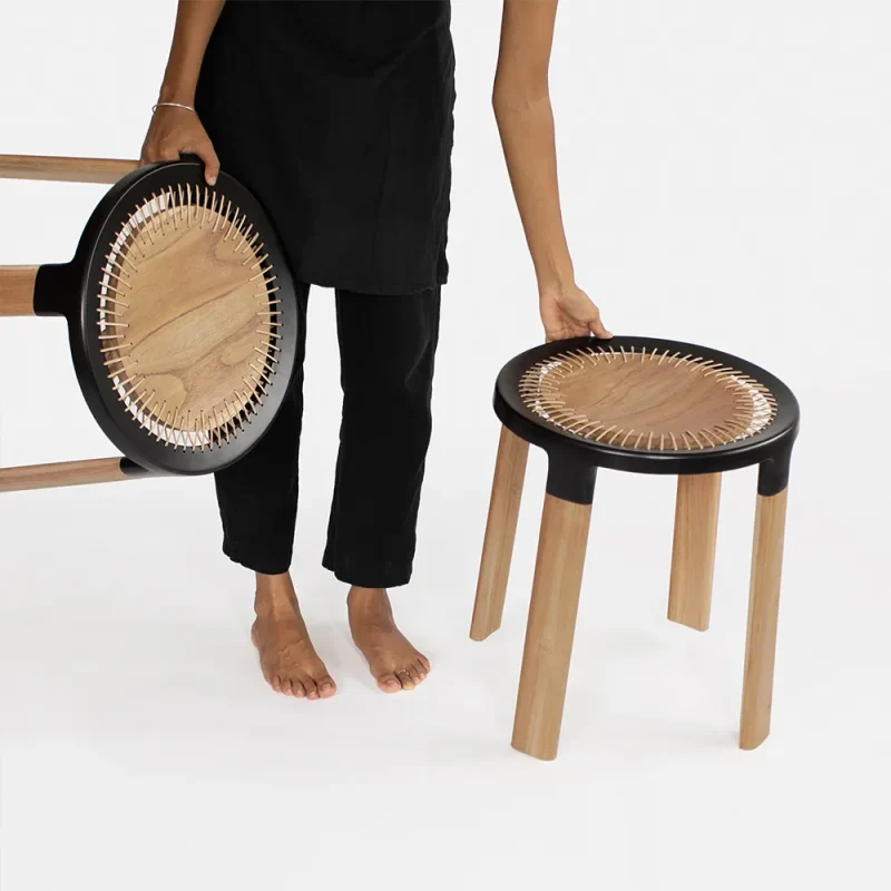 The Ciro stool by India-based designer, Murubi, beautifully incorporates mid-century modern influences alongside traditional craftsmanship, creating a seamless blend of timeless and contemporary design. With a design philosophy rooted in a harmonious relationship between material, methodology, and ergonomics, this stool represents a unique fusion of the past and present. The weaving, playing multiple roles in aesthetics, comfort, and support, adds a distinctive touch. Honoring its design legacy, Ciro pushes the boundaries of production, offering a one-of-a-kind seating solution that effortlessly enhances both residential and commercial spaces, celebrated for its stability and lightweight nature.