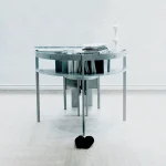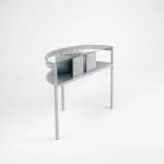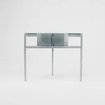 A versatile workspace designed by Hypothesis Furniture for all creators, featuring built-in storage to organize sketches, drawings, and manuscripts in A5, A4, and A3 sizes. Its semi-circular shape and transparent glass top allow you to easily track the progress of your work. The steel frame, finished in a sleek, semi-gloss gray, adds a touch of mystery to any space. Whether you’re drawing, writing, or designing, this table supports the seamless flow of your creative process. Additionally, sewing clamps allow you to adjust the area of storage compartments, providing flexible organization for your materials. This piece originated from my own reflections on the importance of creative continuity and was created with the intention of offering encouragement to all creators. Hypothesis Furniture sincerely wishes for your creative journey to thrive.