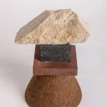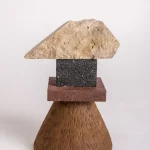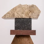 The sharp contrasts between the natural light limestone and the bold, geometric enclosures create an intricate balance of soft and hard forms. The clarity of the materials, paired with the minimalist design, allows this sculpture to speak volumes with its quiet presence. It embodies the purity of form and the strength of elemental materials.