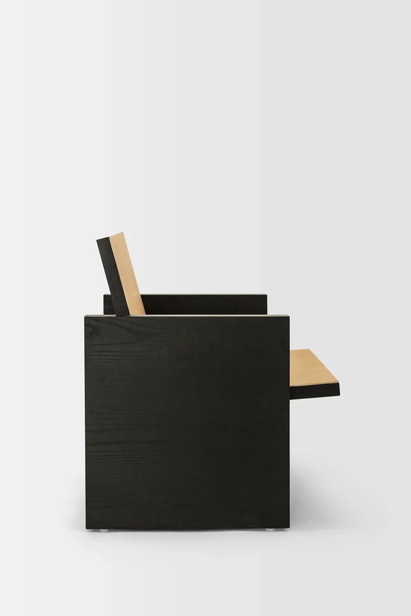 Simple lines and noble materials define Clavijero, a lounge chair and bench in blackened oak. Made by hand using traditional carpentry techniques, these two pieces are created for conversation, reading, rest, and contemplation. Clavijero takes its name from one of the oldest theaters in Mexico. The shape of classic theater seats inspired the design of the two pieces of furniture in this line. Comfortable cowhide beautifies the surface of the pieces. The balance of materials in the Clavijero line elevates the features of the oak wood and the cowhide, achieving a unique, timeless look.
