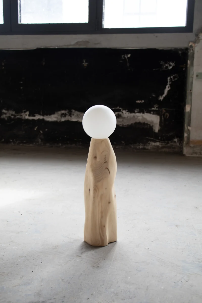 The Cleo Lamp is hand-carved with care in Alice Lahana’s Parisian studio. Each lamp is a unique sculptural piece made from pine wood and combining coastal aesthetics and winter wood elegance. Inviting soft minimalist elements, this lamp brings a cozy and distinctive illumination to any space.