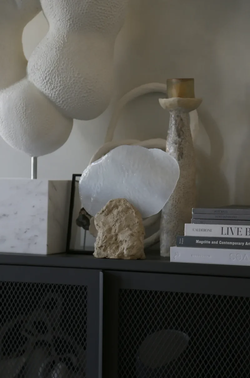 I am a Los Angeles based sculptor working in various multimedia forms. My body of work explores materials and organic shapes. Through research and experimentation, I create a mix of blown or fused glass, stone, clay, sand, cement, hemp, eggshells, recycled paper, and metal. each piece reflects my dedication to understanding and transforming raw materials into expressive, dynamic forms.