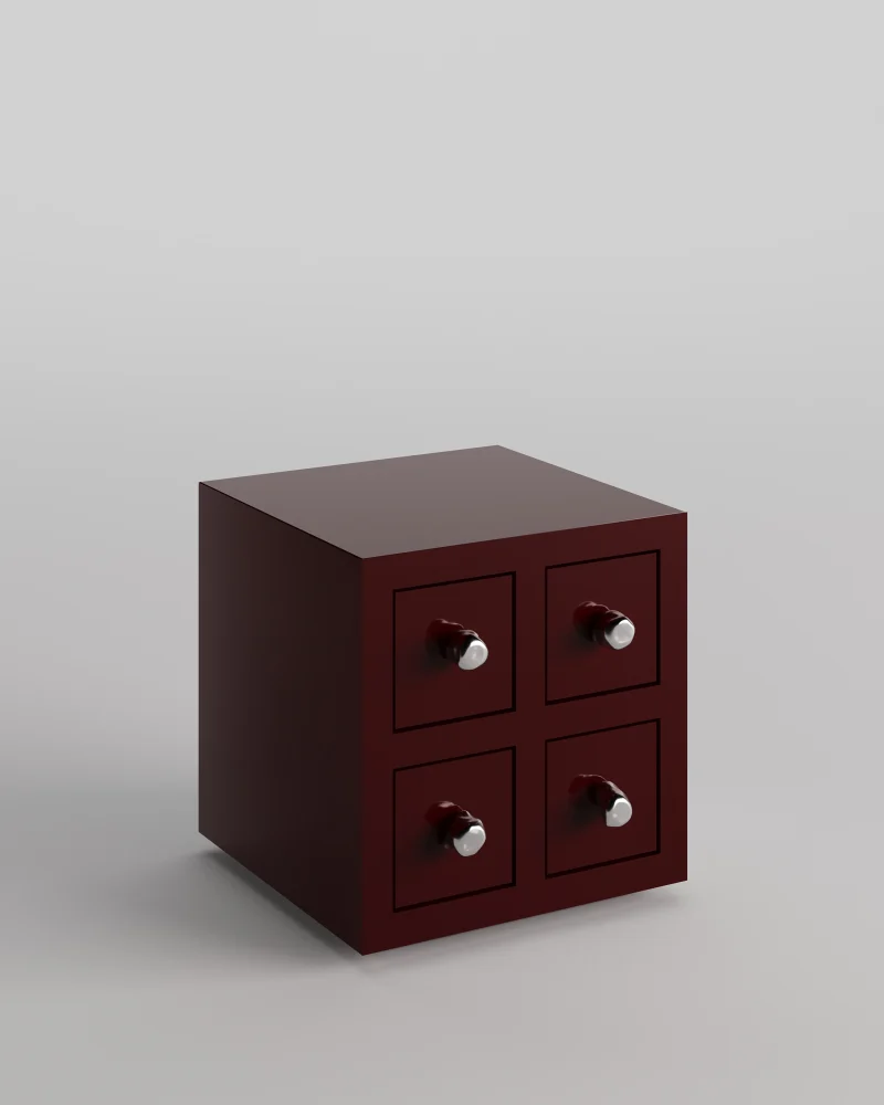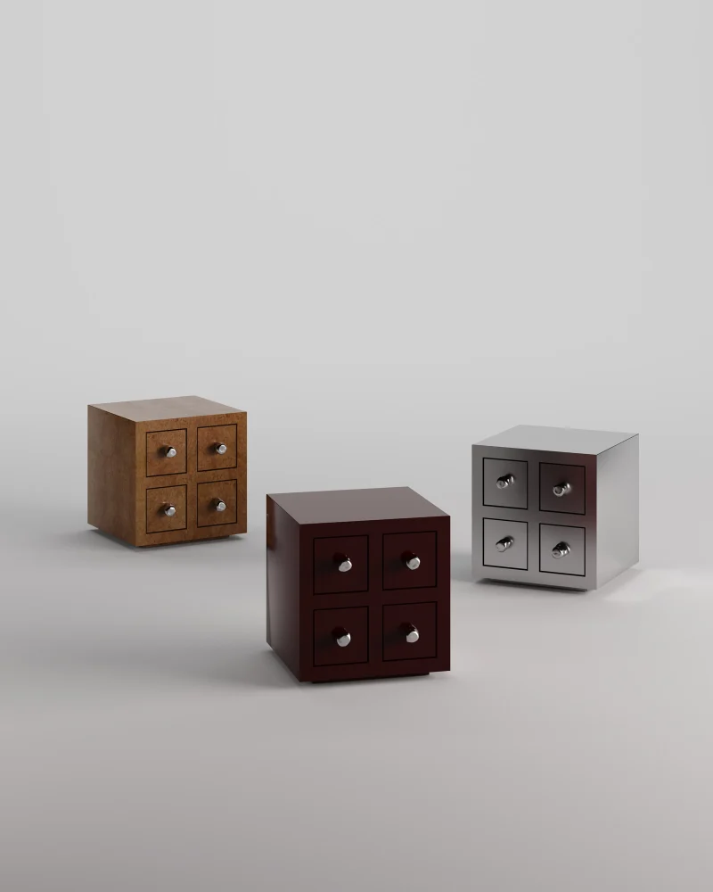 Featuring custom metal cast handles, the Coco Side Table brings an extra touch of elegance to its compact, cubic form. The table’s four drawers provide ample storage, while its sleek design and refined details make it an ideal accent piece for both contemporary and traditional settings. Whether used as a bedside table or an accent piece in a living room, the Coco Side Table adds a touch of sophistication and timeless style to any room.