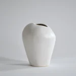 Glazed ceramic stoneware. Holds water, but due to the porous nature of stoneware, we do not recommend setting on surfaces that may be damaged by sweating.
