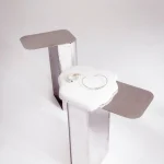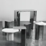 The rigidity and brightness of the metal in contrast with the organic and opaque nature of a singular compound made of resin and plaster fully developed at the studio.