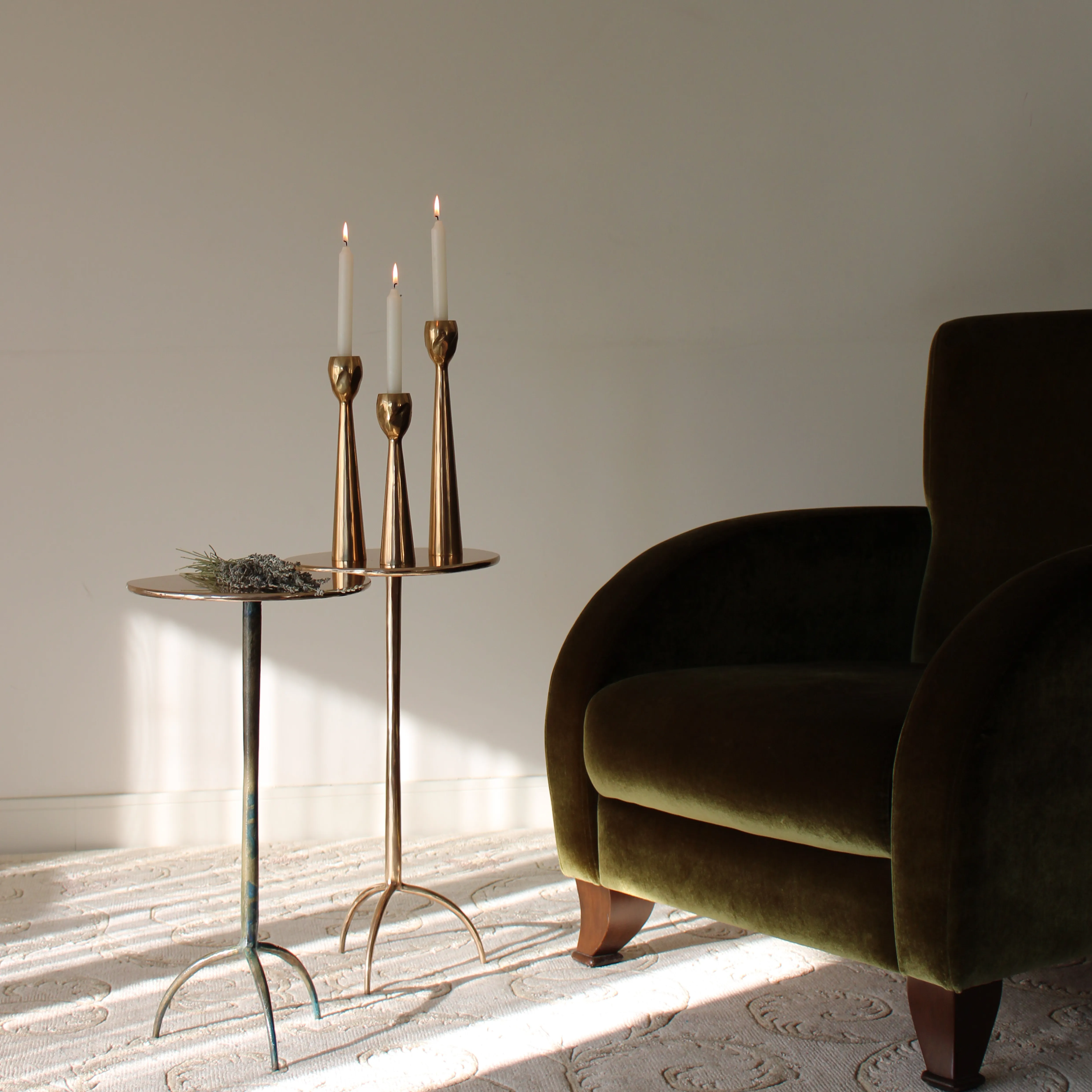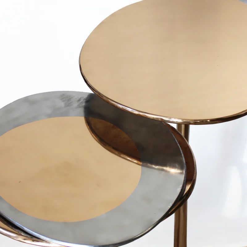 It is produced with bronze, aluminium, or stainless steel materials with traditional casting techniques. The peculiarity of this series is that it takes us to an endless sea of possibilities with its textures and different variants of the top while preserving its general structure. Each piece is produced in our foundry and puts together with fine craftsmanship.