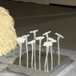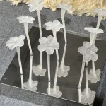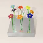 Grounded by a mirrored stainless steel sheet, they invite the observer to reflect on their own experiences and memories they hold dear. Celebrating the duality between the ethereal and the industrial. Despite their fragility, the flowers seem to bloom confidently from the reflective, metallic surface, symbolizing the resilience and beauty of nature in modern environments. The flowers are also playful and childlike, inviting the viewer to play. Exploring both the juxtaposition of fragility and strength. The interplay between nature and industrial design. The many facets of impermanence.