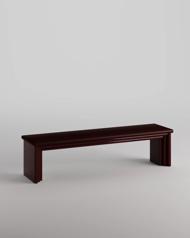 The Column Bench by Tuğçe Geyik reflects a mid-century modern influence, crafted from root veneer wood and featuring a sleek, minimalist design. Its main form evokes the entrance of a temple, adding depth and a sense of grandeur to any space. With a high-gloss lacquer finish option, this bench brings sophistication to entryways, bedrooms, or seating areas. The column-inspired design enhances its timeless elegance, making it both a functional seating solution and a stylish accent. Whether as a standalone piece or paired with other items from the Column Series, the Column Bench is a refined addition to any interior.