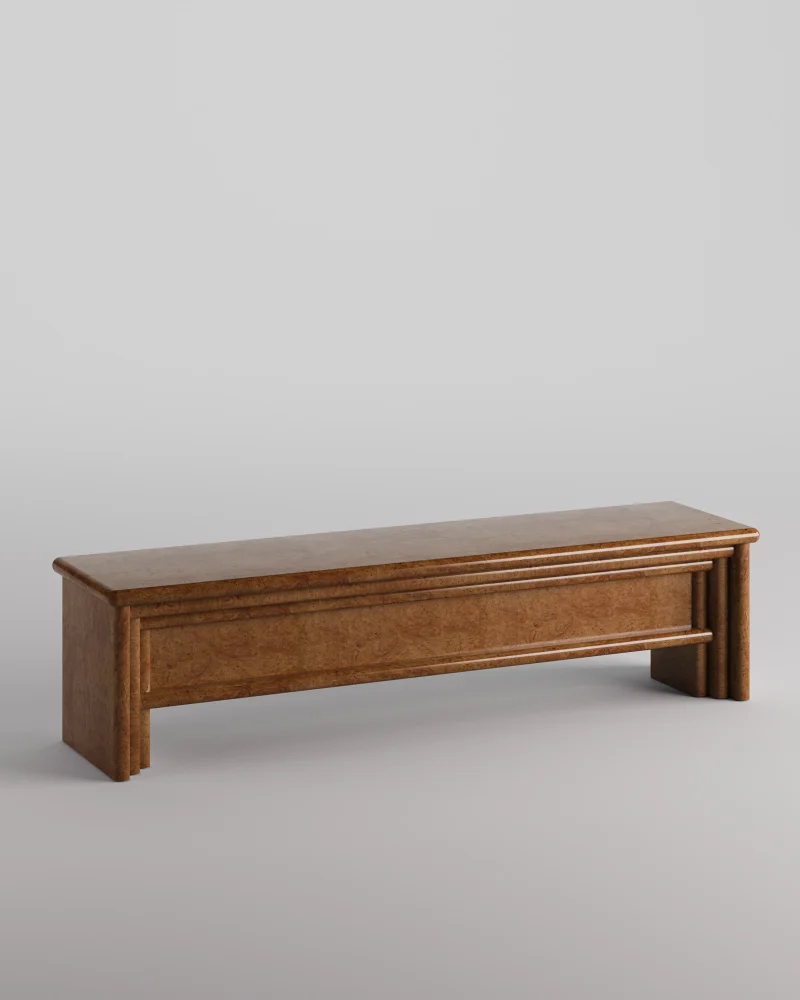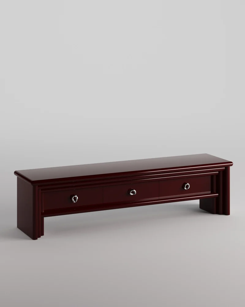 The Column Unit by Tuğçe Geyik reflects a mid-century modern influence, crafted from root veneer wood and featuring custom cast metal handles. Its main form evokes the entrance of a temple, adding depth and a sense of grandeur to any space. With a high-gloss lacquer finish option, this unit brings sophistication to living rooms and entertainment spaces alike. Spacious compartments provide ample storage, while the column-inspired design enhances its timeless elegance. Whether as a standalone piece or paired with other items from the Column Series, the Column Unit is a stylish and functional addition to any interior.