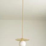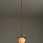 Designed as part of the Atomic Collection by Mexican artist Isabel Moncada, the COMETA Pendant Light is a stunning fusion of craftsmanship and functionality. The centerpiece of this minimalist design is the hand-hammered brass disc, a testament to artisanal skill that not only adds character but also reflects light with a warm, inviting glow.