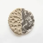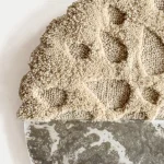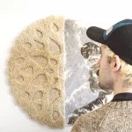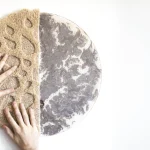 Behind the tapestry, the mirror’s surface reveals another layer of memory. Through a self-invented process of hand-poured silvering, intricate crochet patterns are imprinted directly onto the glass. These woven forms, ghostly and fragile, emerge as if from another time—faint echoes of our grandmothers’ hands, who once crocheted lace to soften the edges of a world in flux. The silvering process is semi-controlled, balancing precision and spontaneity; each mirror bears the trace of that moment, where material, memory, and accident converge.