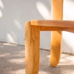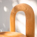 Crafted in solid cherry wood, the chair’s seat is CNC-carved for precision, while the frame is hand-shaped with an angle grinder and refined with files, giving each edge its softened but intentional character. The warm tone of the cherry was chosen to harmonize with the concrete and desert landscapes that inspired its design.