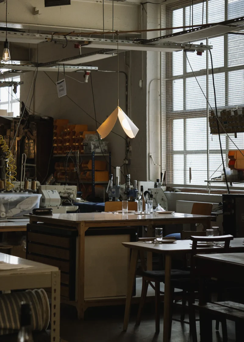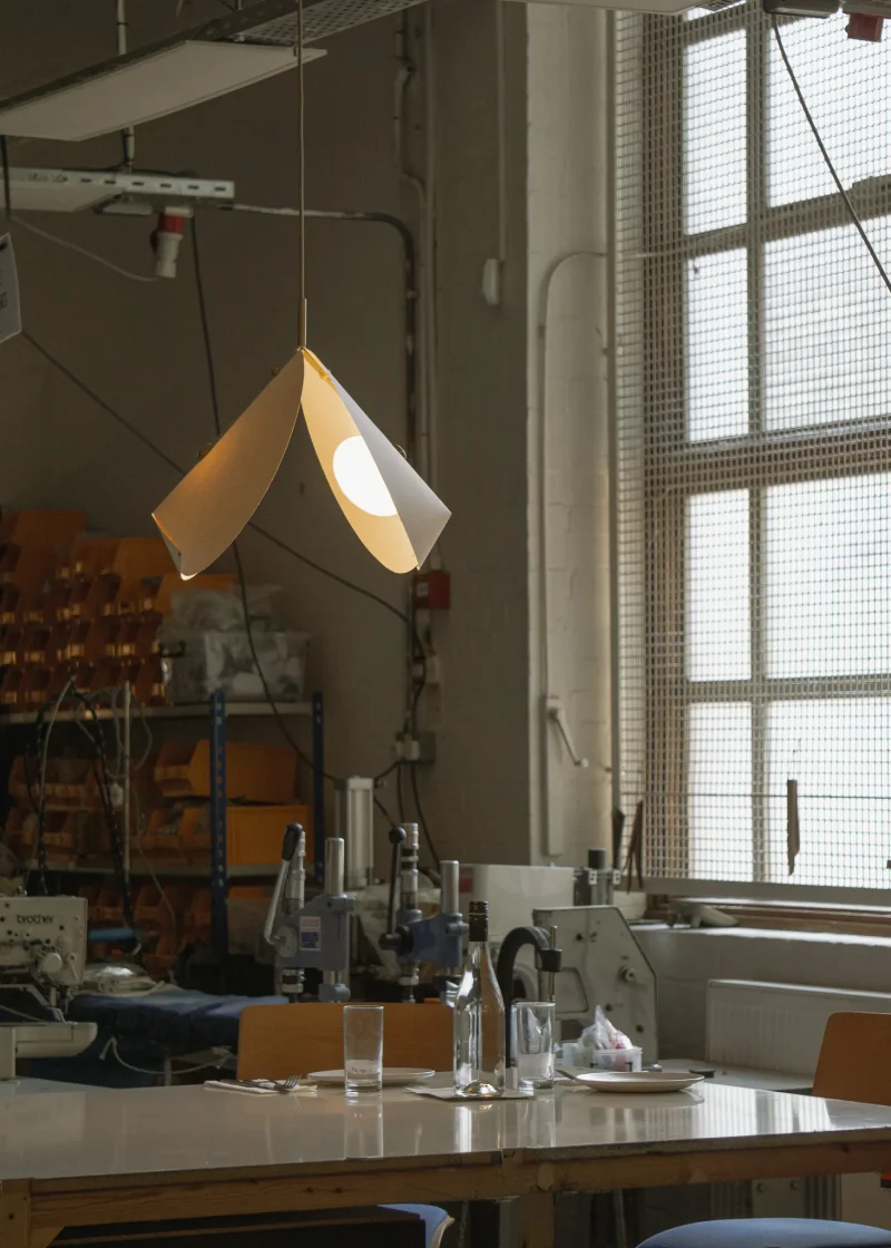 Available in three distinct angular models and two sizes and five colour-ways, it invites you to embrace a moment of serenity after a period of transformation. The CONCHA collection is handcrafted and assembled in our London-based studio. Sourced from paper pioneers G.F Smith, the collection utilises a combination of sustainably sourced textured and color-plan papers, elevating paper as a hero material and exploring its unique properties and fluidity. The vanilla, ochre, brick red and chestnut brown colour-ways are made out of paper sourced from the Gmund mill and are made using elemental chlorine-free pulp & spent brewer’s grain. The paper displays a gentle flecking of brewer’s grain creating a unique surface with a hint of texture. It is only available in this fixed colour palette. The royal blue colour-way is sourced from G.F Smith’s sustainably produced color-plan range and offers other 55 colours.