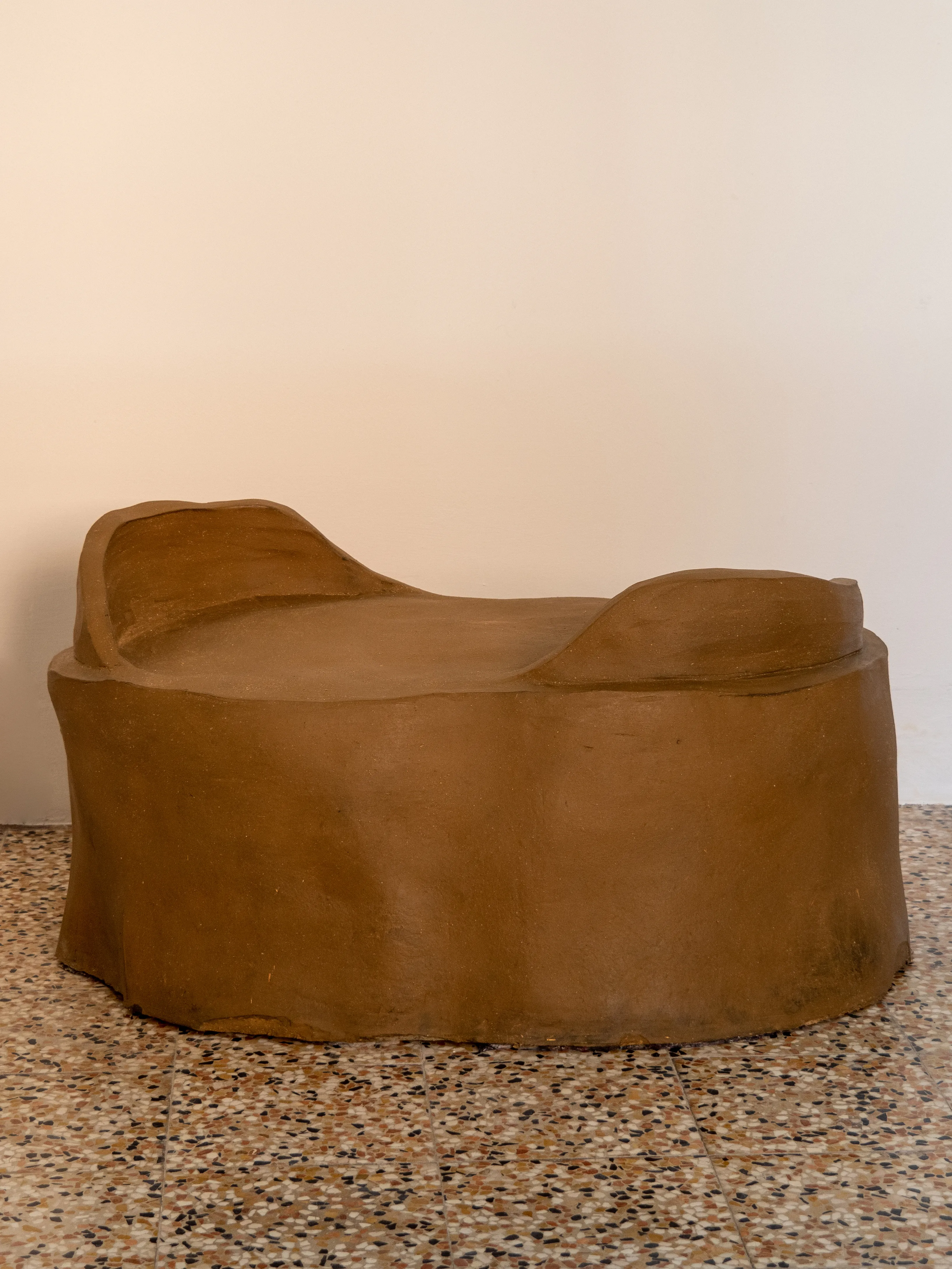 Mediterranean-inspired, from the Maghreb Ksar, the “Confidente”, a two-seater chair made of raw earth oils and natural waxes, is a metaphor and abstraction of the collective dwellings typical of Morocco. A reinterpretation of the living space, synthesized and maximized in the communicative value, aims to create, itself, a place of sharing and conversation.