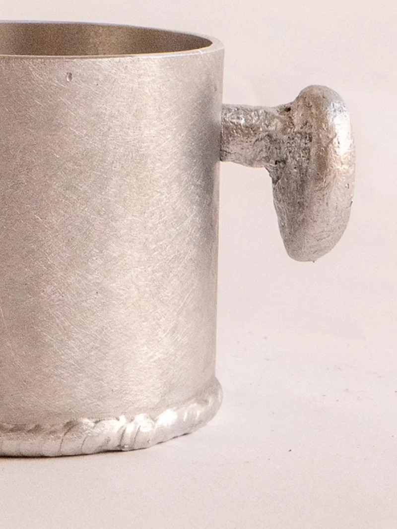 This cup is ornamental and expressive, the visible welding and hand cast handle create an object that feels contemporary yet as though it has always existed.